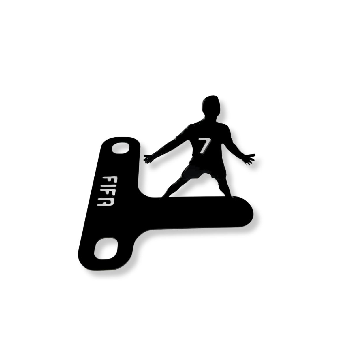 Suporte em acrílico de alta resistência, com design exclusivo de jogador nº7. Ideal para apoiar controles de videogame, trazendo praticidade, estilo e um toque diferenciado para sua decoração.