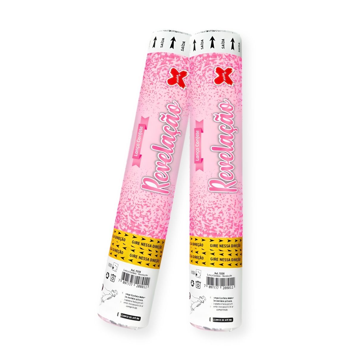 Cada tubo possui uma indicação discreta na parte inferior, que informa se o confete é rosa (menina) ou azul (menino), garantindo uma revelação organizada e sem surpresas antes da hora.
