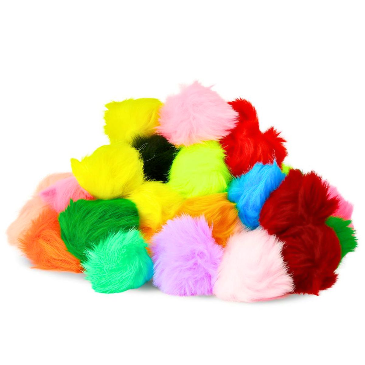 Os pompons de pelúcia, são muito utilizados para artesanatos e trabalhos a mão em geral. Diversas criações podem ser possíveis como chaveiros, enfeites, brincos entre outros.