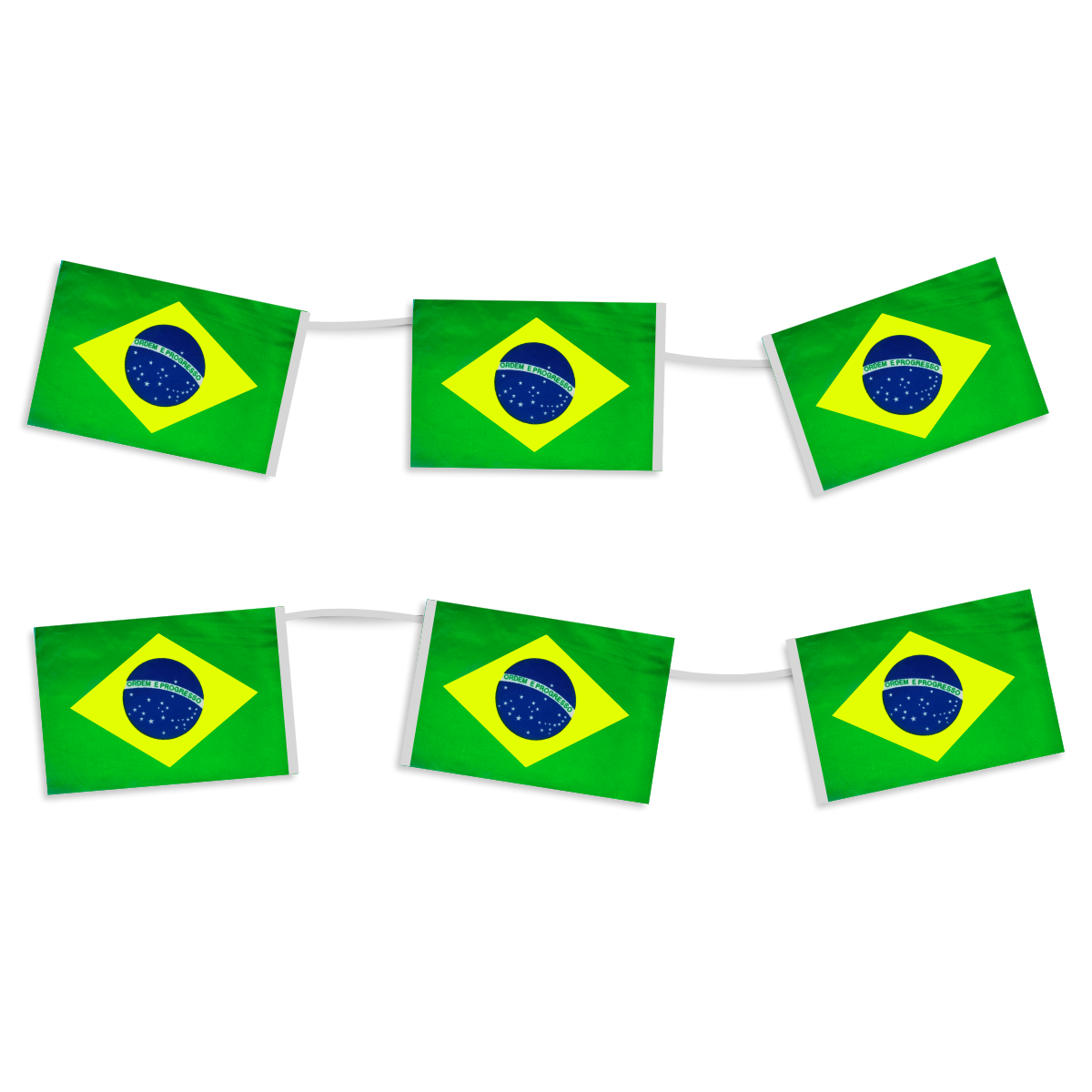 Bandeira do Brasil confeccionada em tecido leve e resistente, com cores vivas e excelente acabamento.