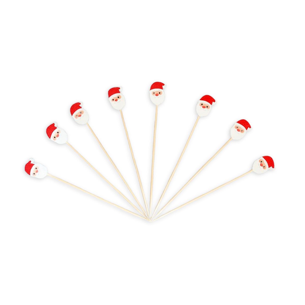 Perfeitos para decorar mesas, bandejas e aperitivos, esses palitos trazem o charme do Natal com mini rostinhos do Papai Noel que encantam adultos e crianças.